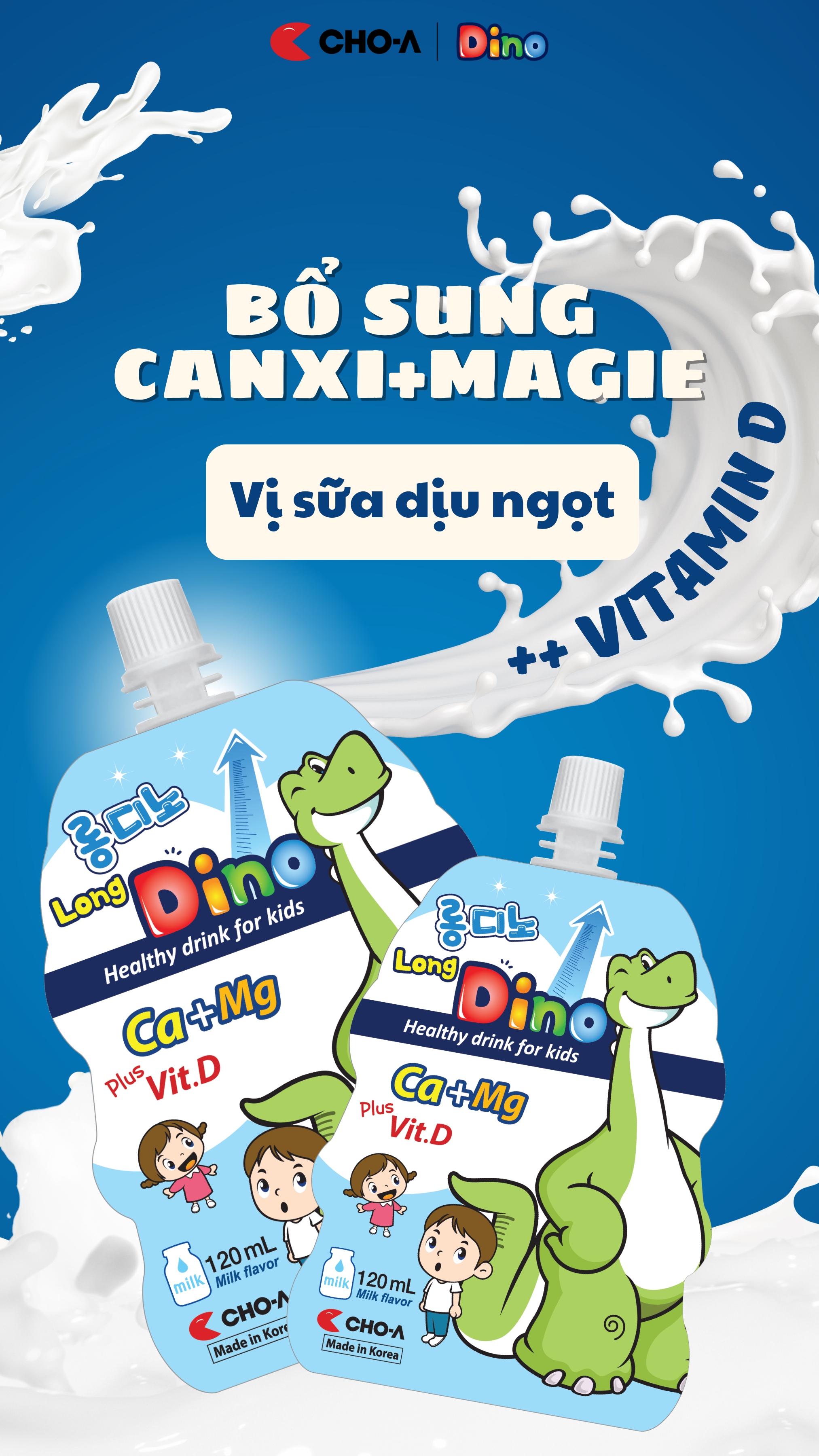 - Long Dino (Sữa): Bổ sung thêm nhiều canxi, magie và vitamin D để phát triển hệ cơ xương và trí não, giúp bé ăn khỏe và ngủ ngon