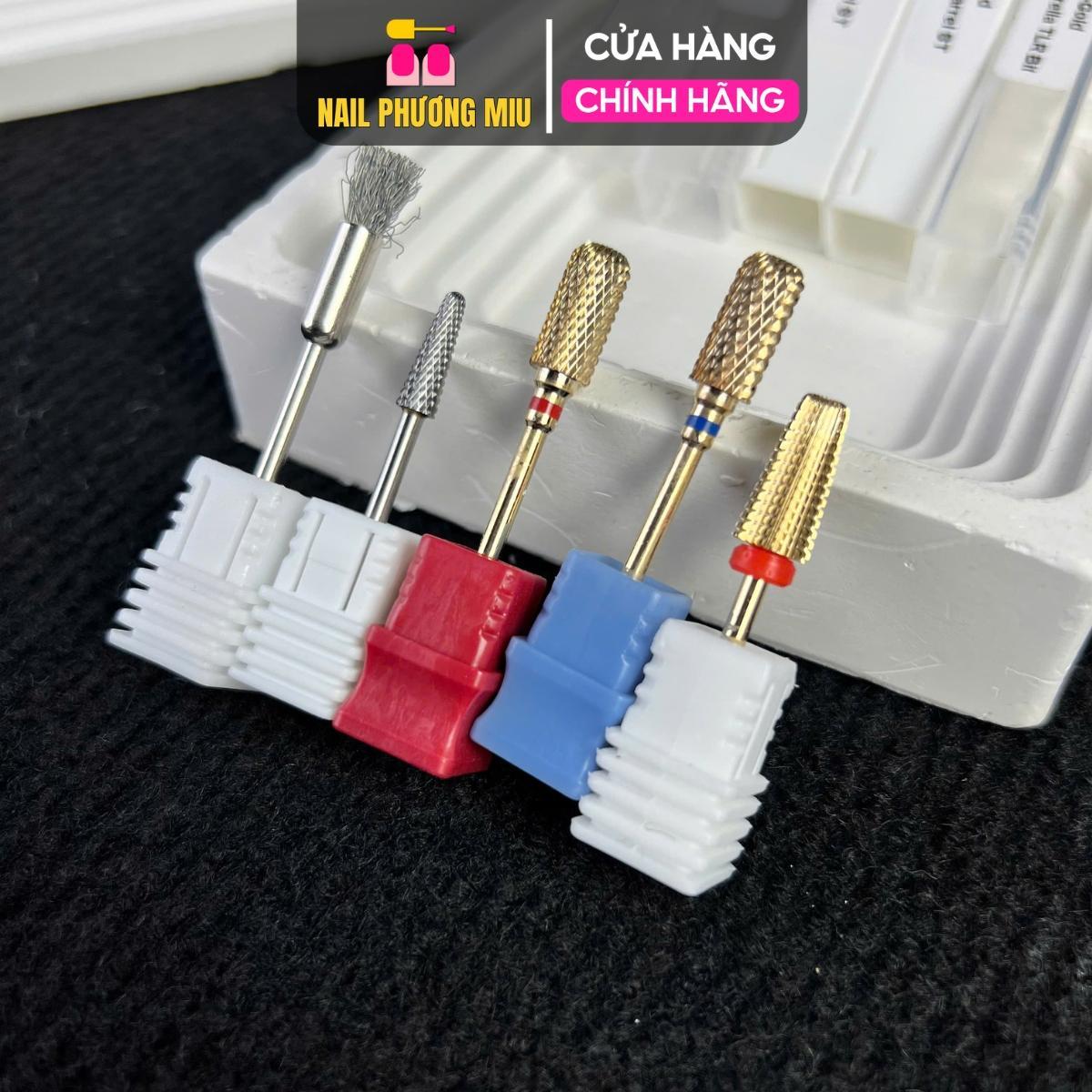 ✨Combo 4 Đầu Mài Mạ Vàng Số 2 Đầy Đủ 5in1, Xanh Phá gel , Đỏ Mịn, Chân Móng Úp Tặng Chổi Vệ Sinh Làm Nail Mài Êm Không Nóng