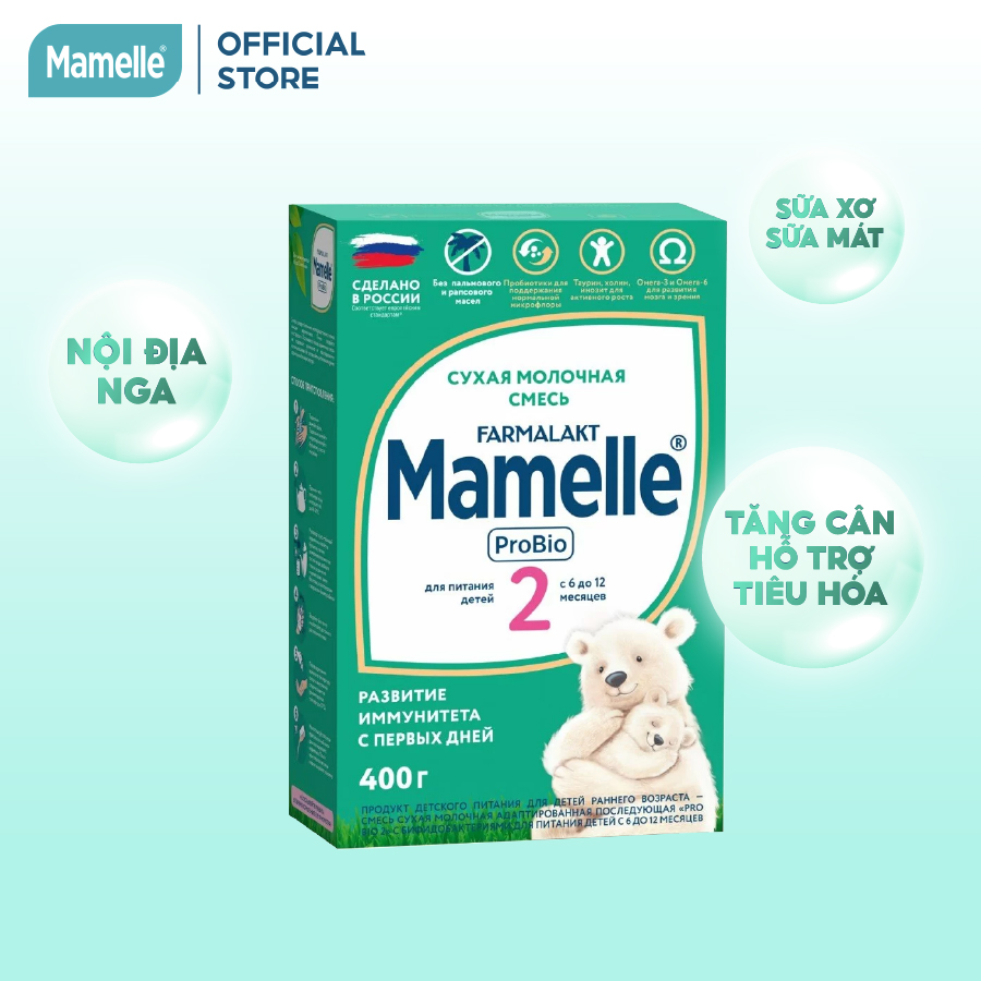 COMBO 2 HỘP SỮA BỘT CÔNG THỨC MAMELLE PRO BIO SỐ 2 CHO TRẺ TỪ 6 ĐẾN 12 THÁNG HỘP 400G/HỘP THÔNG TIN SẢN PHẨM - Thương hiệu: Mamelle - Xuất xứ sản phẩm: Nga