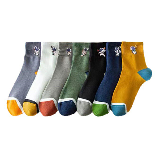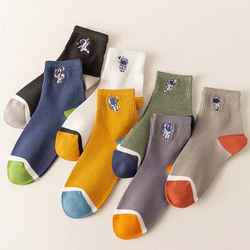✨Combo 5 đôi Vớ tất nam cổ trung màu trung tính thêu phi hành gia thông hơi
