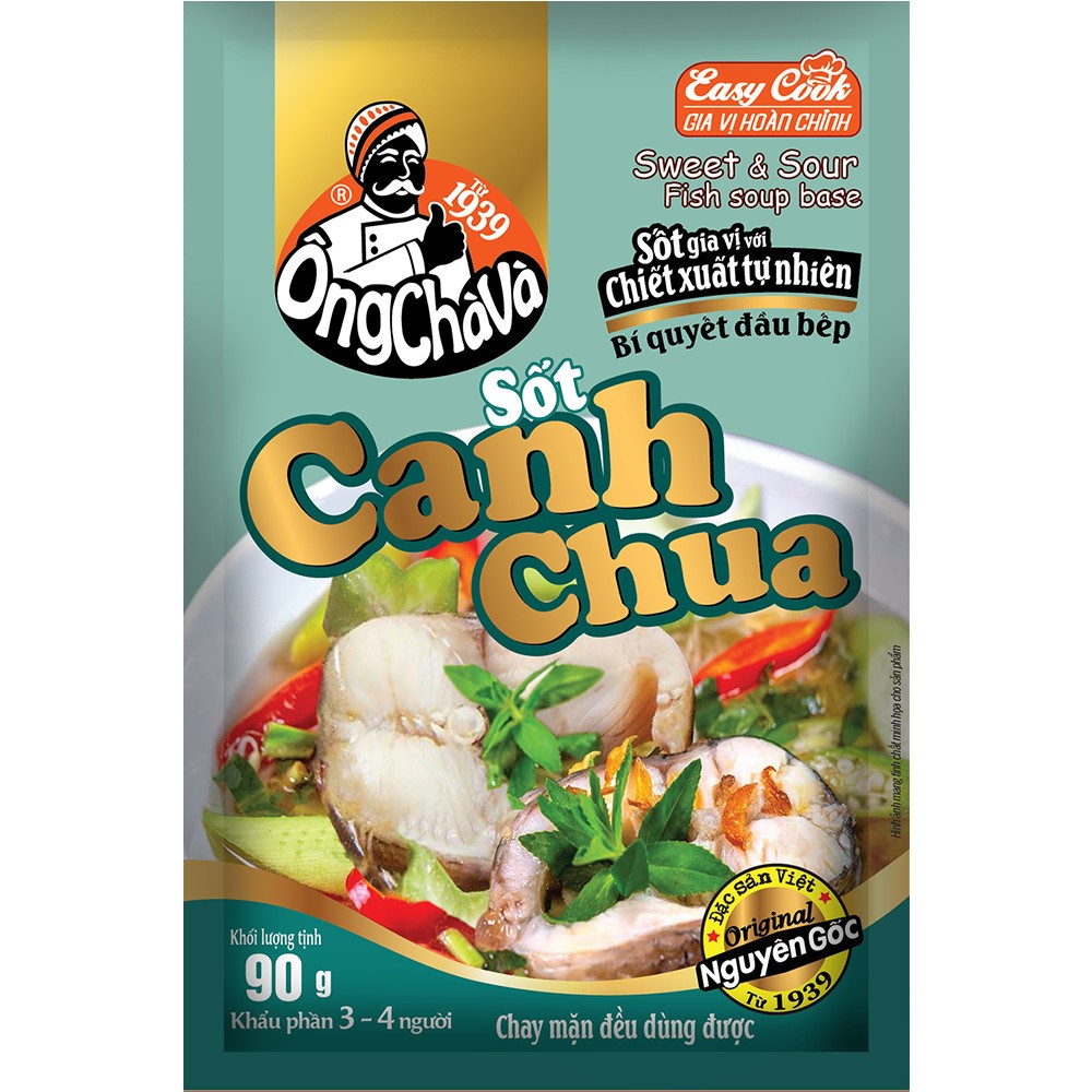 - Hướng dẫn sử dụng: + Bước 1: Xào cà chua và thơm trước, thêm 1,5L nước, đun sôi, cho 1 gói Sốt Canh Chua Ông Chà Và 90g vào khuấy đều, cho cá/tôm vào đun tiếp từ 1-2 phút.. + Bước 2: Thêm rau vào đun sôi trở lại rồi tắt bếp. + Mách nhỏ: Đối với người không ăn chay có thể thêm nước mắm để thơm ngon đậm vị hơn.