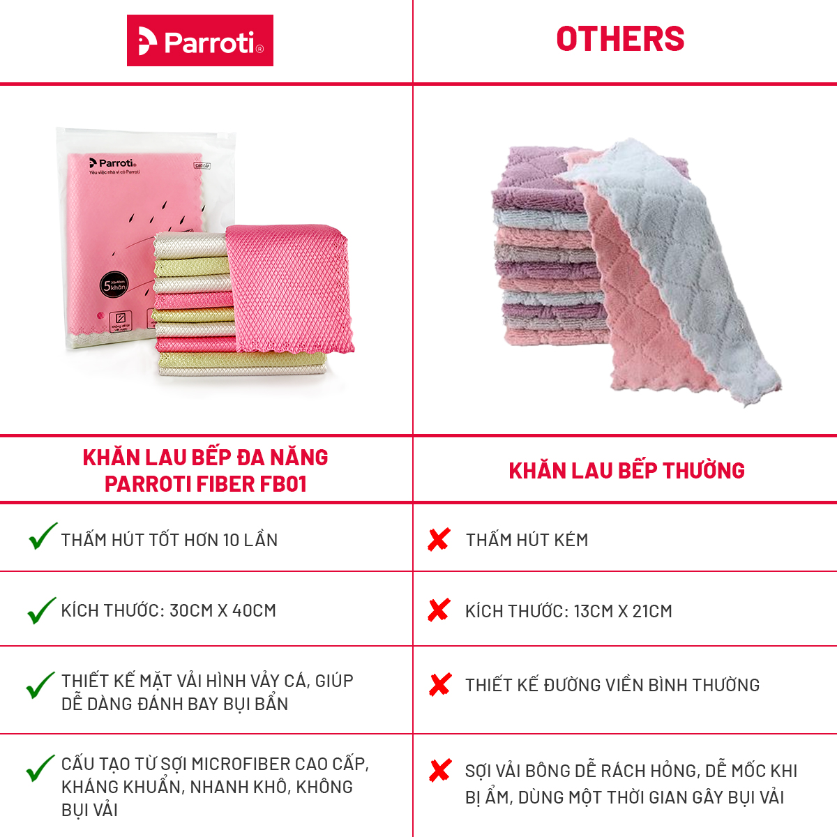 - Tên sản phẩm: Khăn lau đa năng Parroti Fiber FB01