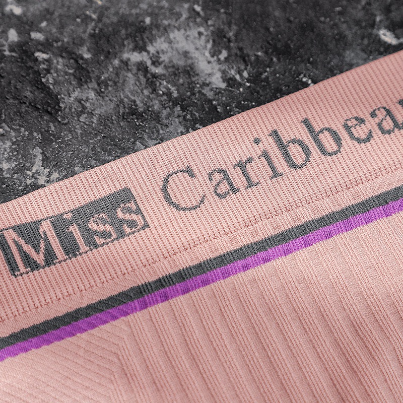 Thun eo bản lớn in logo “Miss Caribbean”: Vừa tạo điểm nhấn thời trang, vừa giữ cố định, không bị tụt khi vận động.