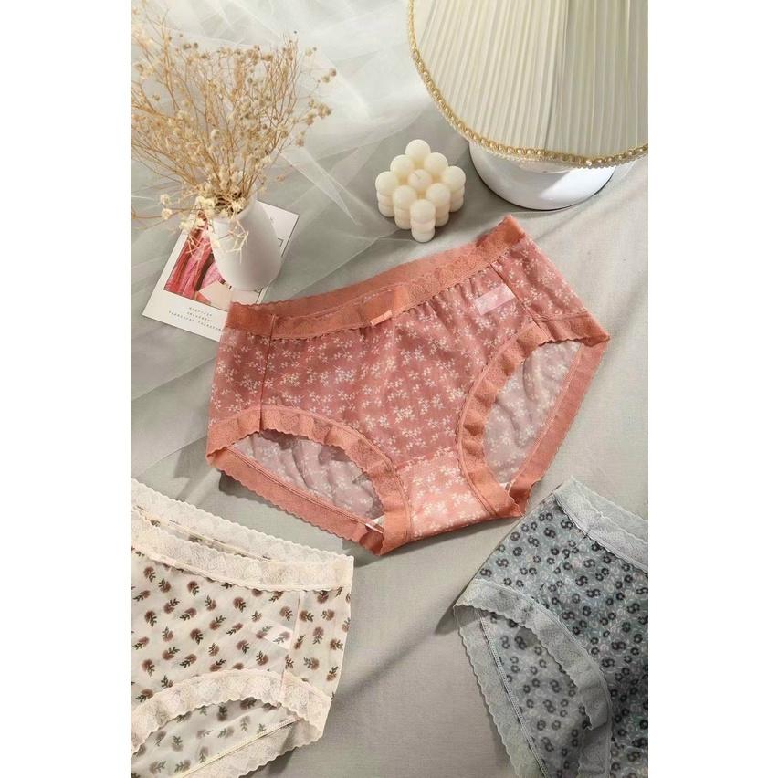 ✨Combo 5 Quần Lót Nữ Voan Hoa Nhí Vintage – Lưng Cao, Big Size 2354