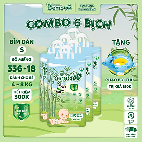 [Combo tiết kiệm] 6 bịch tã/bỉm DÁN Nano Bamboo Chính hãng sợi tre. Tiết Kiệm 300k cho mẹ và kèm quà tặng - Số lượng: 336 + 18 miếng - Nguyên liệu SAP thấm hút
