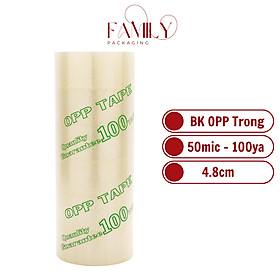 Băng Keo Trong Gói Quà 4.7cm x 100ya x 50mic - Kích thước: Rộng 4.7cm (tương đương ~48mm) - Chiều dài: 100 ya (khoảng 91 mét) - Độ dày: 50 mic (micron) - Chất liệu: