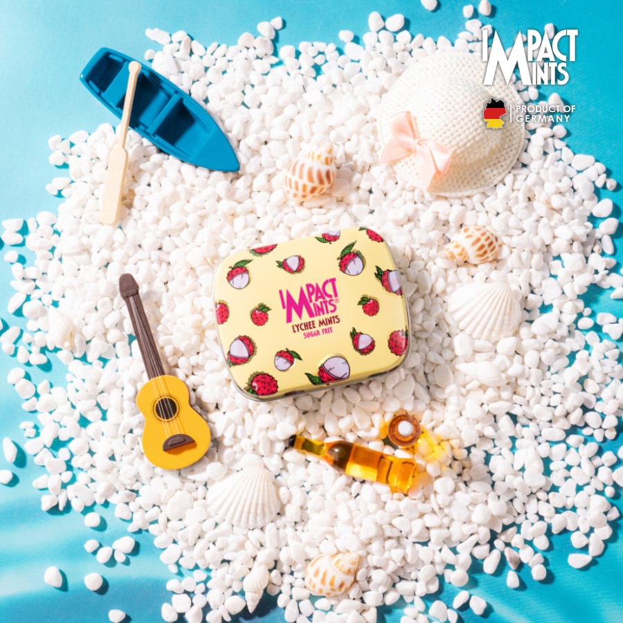- Kẹo Ngậm Bạc Hà Không Đường IMPACT MINTS Hương Vải 14G Thành phần: Chất tạo ngọt, hương bạc hà, chất chống vón (magnesium stearate), dầu thực vật, Công dụng: Thơm miệng Hướng dẫn sử dụng: Ăn trực tiếp Bảo quản: Nơi khô ráo thoáng mát, tránh ánh nắng trực tiếp, đóng kín sản phẩm sau mỗi lần sử dụng.