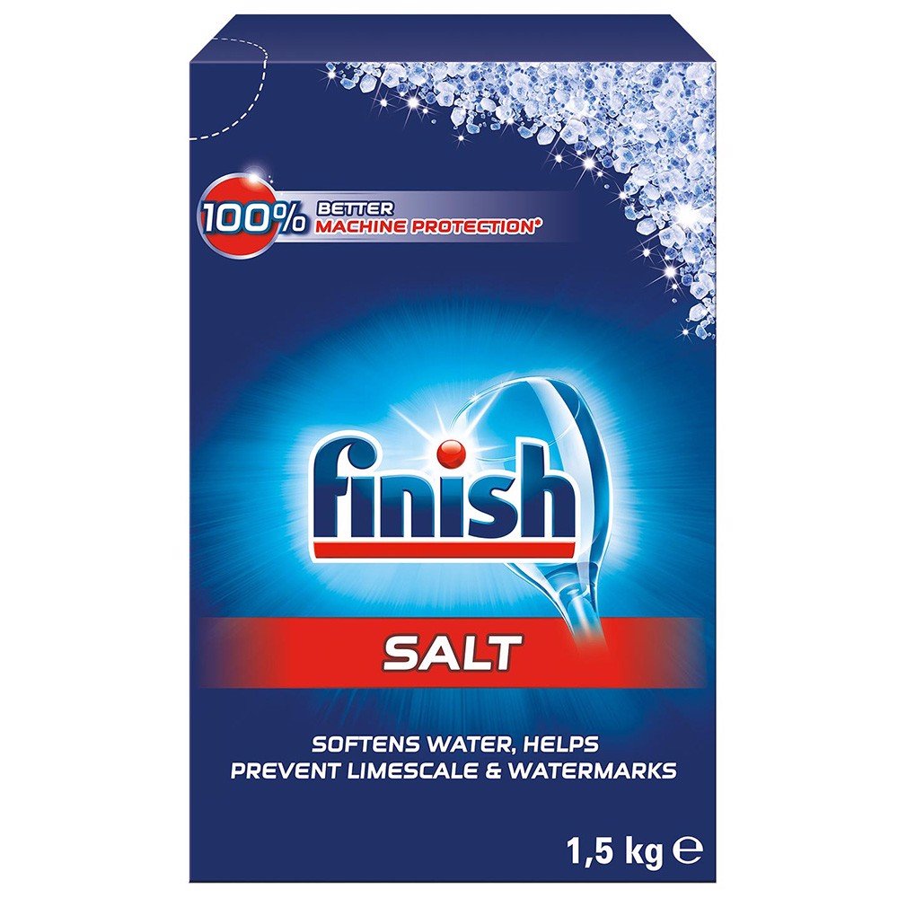 Để ngăn ngừa canxi máy rửa chén được trang bị với 1 chất làm mền nước. Muối rửa bát finish là loại muối đặc biệt không phải muối ăn ( muối bình thường có thể chứa các thành phần không hòa tan, mà còn là dư lượng trên các món ăn và dẫn đến làm hại máy rửa bát, muối rửa bát finish nhập khẩu giúp bảo vệ cả máy rửa chén, bộ lọc và phun cũng như đồ sành sứ và dao kéo.