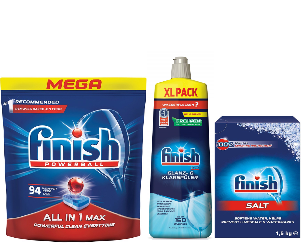 Hãng Finish khuyến cáo nên sử dụng 3 loại chất tẩy rửa riêng biệt để Bát đĩa sạch hơn, sáng bóng hơn và máy bền hơn. 3 loại chất tẩy rửa riêng biệt dùng cho