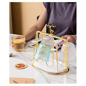 Giá úp ly, kệ úp cốc, chất liệu hợp kim mạ vàng sang trọng, Kèm khay hứng nước
