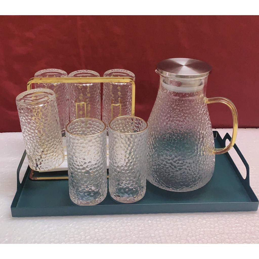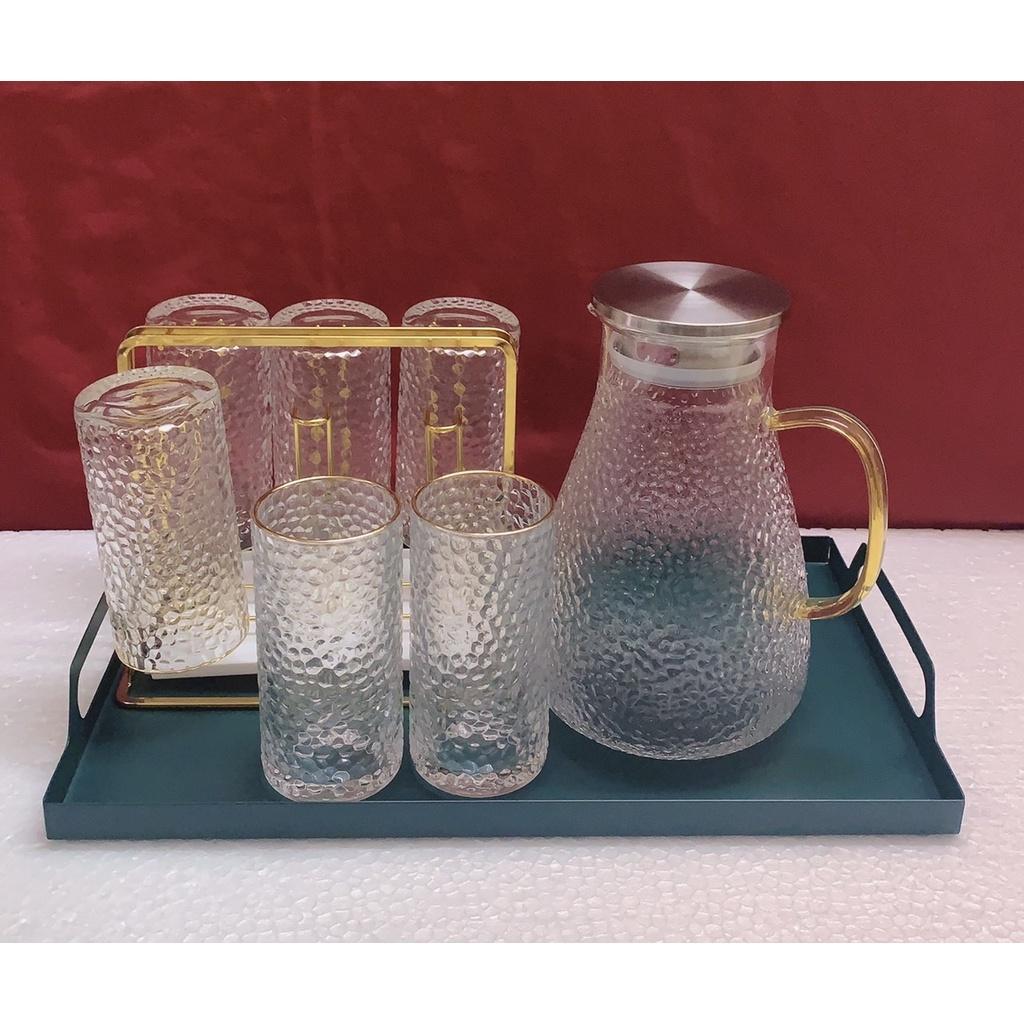 Bộ khay bình nước 6 cốc thuỷ tinh cao cấp