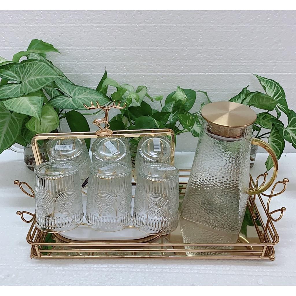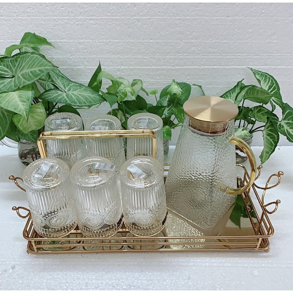 Bộ Bình Cốc Uống Nước Thuỷ Tinh Hổ Phách Cao Cấp 8 Chi Tiết Sang Trọng Độ Bên Cao M04