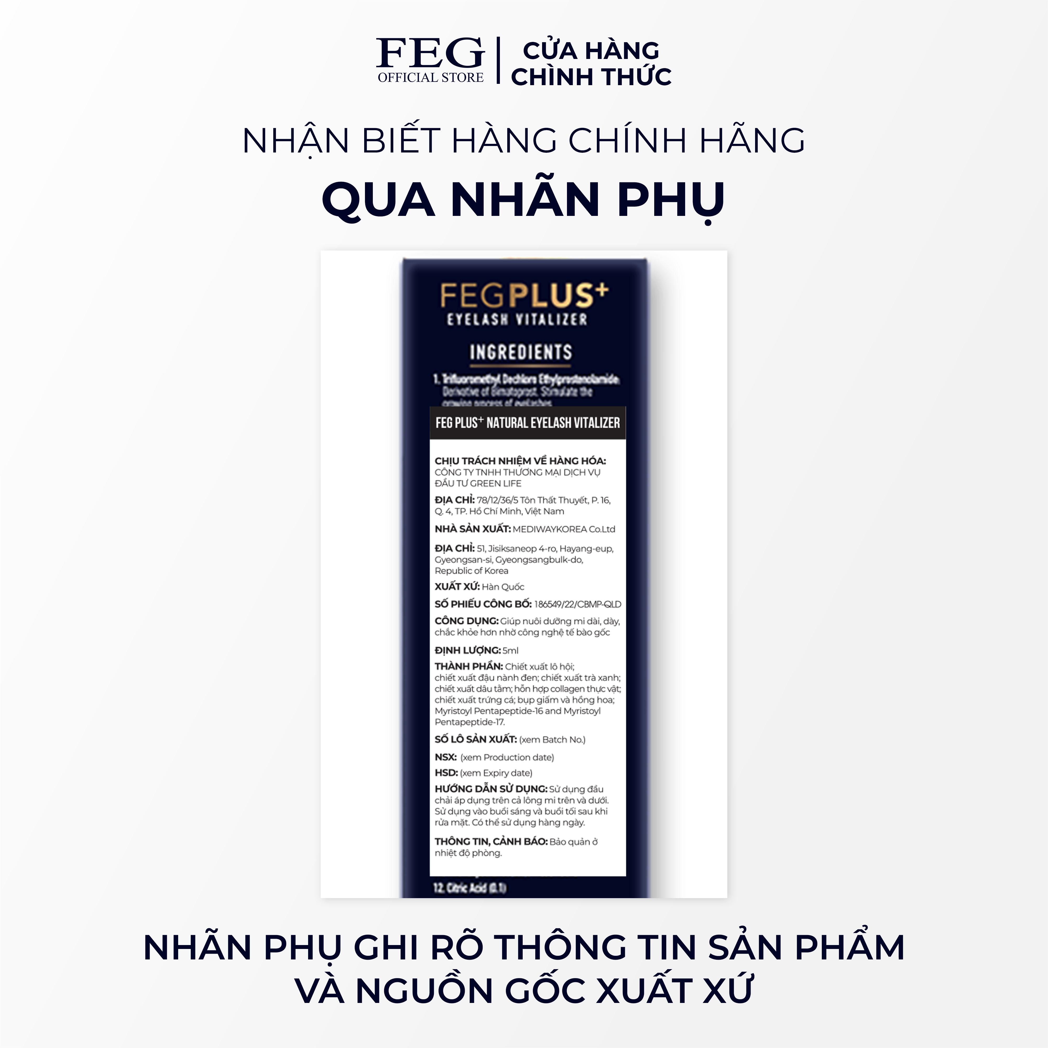 - Địa chỉ website in trên hộp: fegpluseyelash.com;