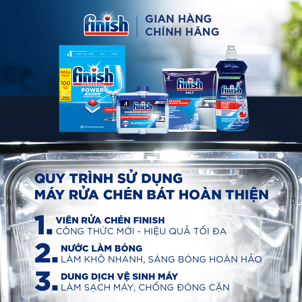 ✨Combo Finish tiện lợi 4: Hộp 100 Viên Rửa Bát Essential + Nước Làm Bóng Finish 500ml + Dung dịch vệ sinh máy