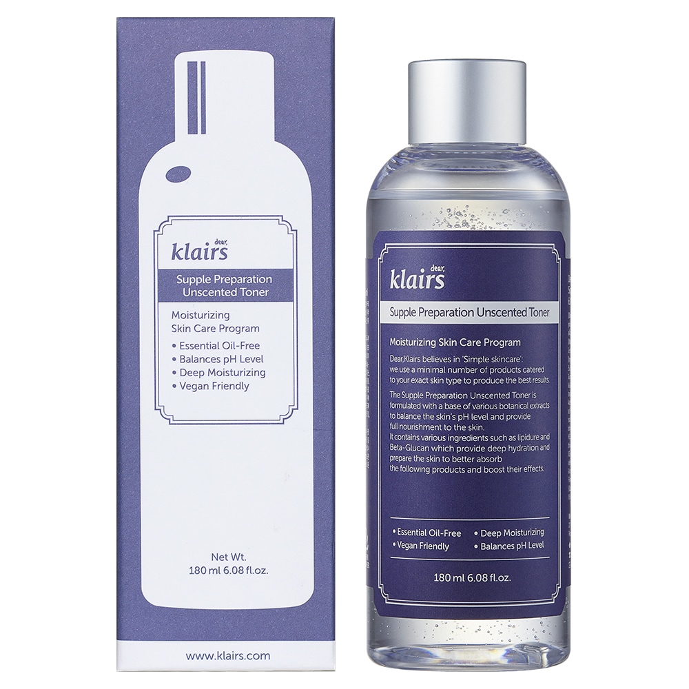 - Loại da: mọi loại da. *Dear, Klairs nước hoa hồng Supple Preparation Unscented Toner 180ml hoặc Dear, Klairs Nước hoa hồng Supple Preparation Facial Toner 180ml Thành phần: Water, Butylene Glycol, Dimethyl Sulfone, Betaine, Caprylic/Capric Triglyceride, Natto Gum, Sodium Hyaluronate, Disodium EDTA, Centella Asiatica Extract, Glycyrrhiza Glabra (Licorice) Root Extract, Polyquaternium-51, Chlorphenesin, Tocopheryl Acetate, Carbomer, Panthenol, Arginine, Luffa Cylindrica Fruit/Leaf/Stem Extract, Beta-Glucan, Althaea Rosea Flower Extract, Aloe Barbadensis Leaf Extract, Hydroxyethylcellulose, Portulaca Oleracea Extract, Lysine HCL, Proline, Sodium Ascorbyl Phosphate, Acetyl Methionine, Theanine, Lavandula Angustifolia (Lavender) Oil, Eucalyptus Globulus Leaf Oil, Pelargonium Graveolens Flower Oil, Citrus Limon (Lemon) Peel Oil, Citrus Aurantium Dulcis (Orange) Peel Oil, Cananga Odorata Flower Oil, Copper Tripeptide-1