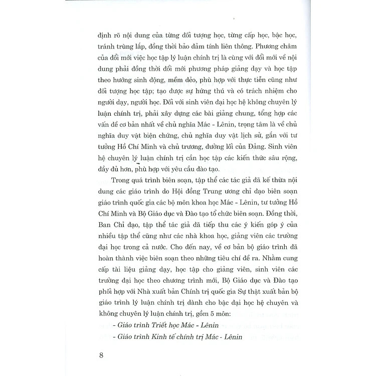 Bộ giáo trình lý luận chính trị gồm 5 cuốn dành cho bậc đại học hệ không chuyên lý luận chính trị.