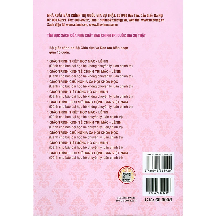 Bộ giáo trình lý luận chính trị gồm 5 cuốn dành cho bậc đại học hệ không chuyên lý luận chính trị. Bộ sách là tài liệu giảng dạy, học tập cho giảng viên, sinh