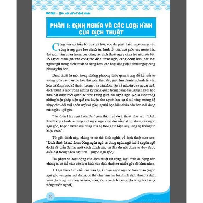 • Giáo trình gồm cả hai kỹ năng biên dịch và phiên dịch. Các kỹ năng được phân bổ cân đối, đồng thời trang bị cho người học năng lực biên và phiên dịch. - Giáo trình dịch hai chiều Trung – Việt và Việt – Trung. Các nội dung lý thuyết và bài tập chú trọng cả 2 ngôn ngữ, qua đó g