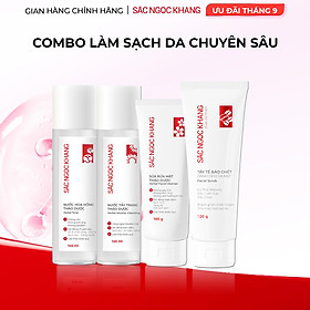 ✨Combo làm sạch thảo dược Sắc Ngọc Khang: Nước tẩy trang 145ml - Sữa rửa mặt 100g - Nước hoa hồng 145ml - Tẩy tế bào chết da mặt 120g