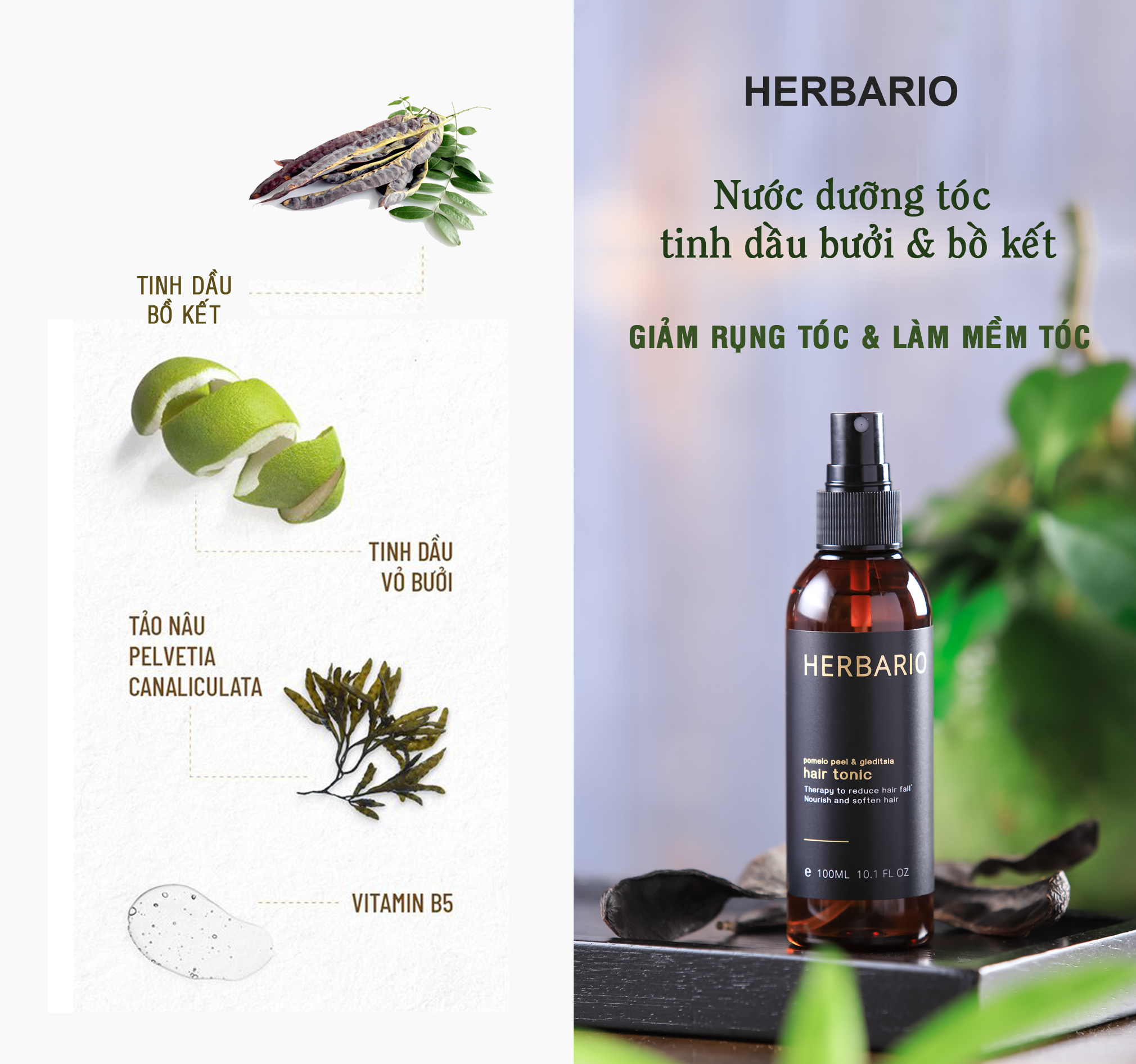 Nước xịt dưỡng tóc vỏ bưởi & bồ kết HERBARIO 100ml giảm rụng tóc, giúp tóc khỏe mạnh