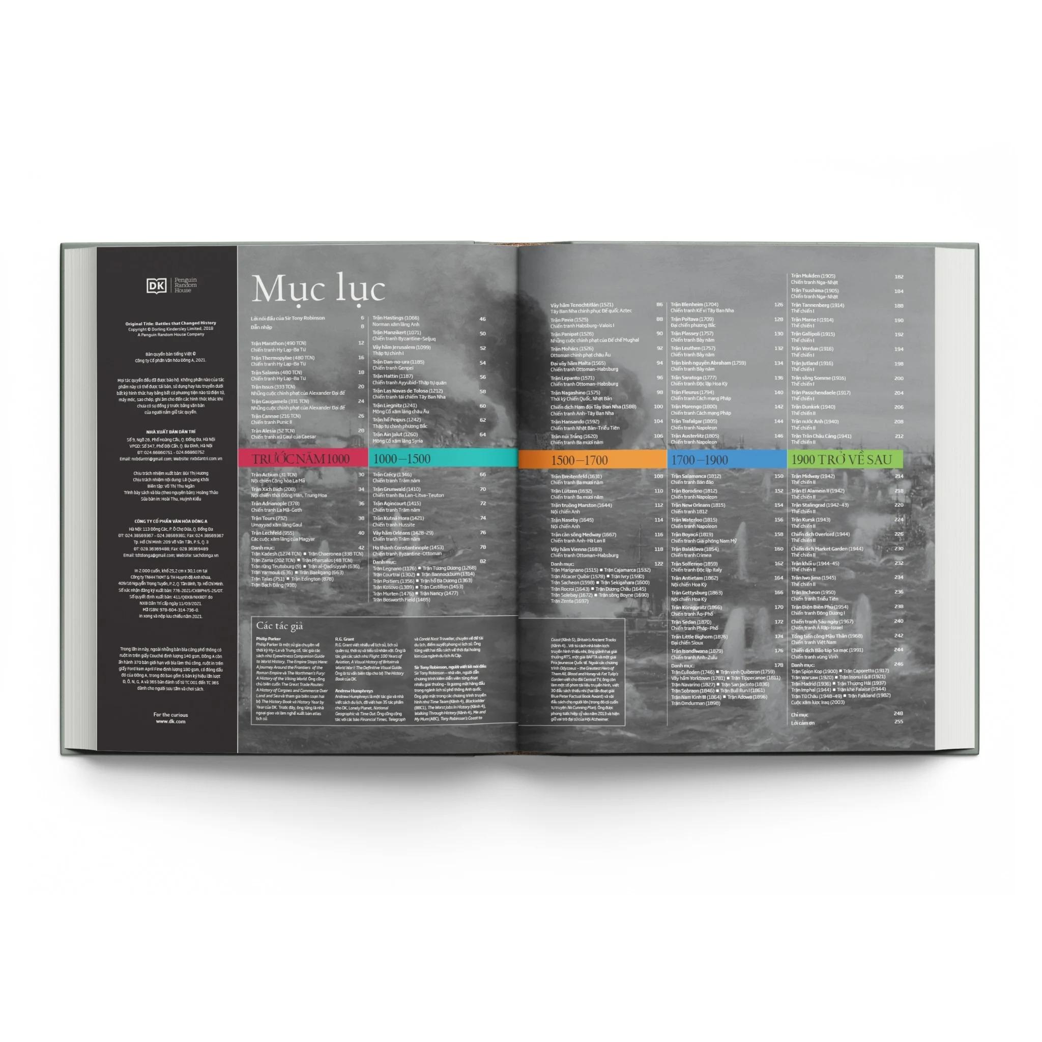 Những trận chiến thay đổi lịch sử là tuyển tập hơn 90 trận giao tranh quan trọng nhất thế giới, từ thời cổ đại cho đến kỷ nguyên nguyên tử. Được minh họa sống động bằng bản đồ, tranh vẽ, vật chứng và ảnh chụp, mỗi chương sách giúp tái hiện những trận chiến quan trọng của thời đại, cho thấy cách mà những thời khắc then chốt và những quyết định mang tính chiến lược đã thay đổi tiến trình lịch sử như thế nào.