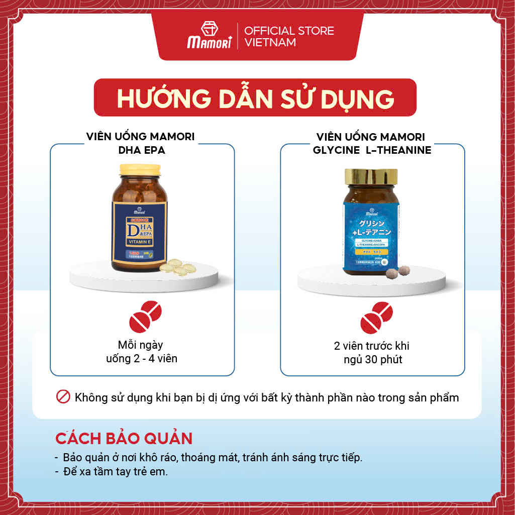 Combo viên uống MAMORI DHA - EPA và Glycine L-theanine là giải pháp hoàn hảo để chăm sóc giấc ngủ và phát triển trí tuệ. Viên uống DHA - EPA từ Nhật Bản hỗ trợ