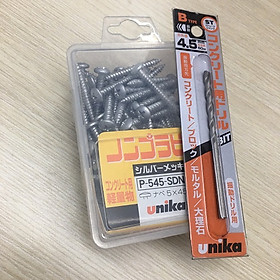 ✨Combo Vít bê tông 5mm đầu dù P545 & Mũi khoan bê tông 4.5mm đuôi kẹp Unika (Không cần tắc kê nhựa)
