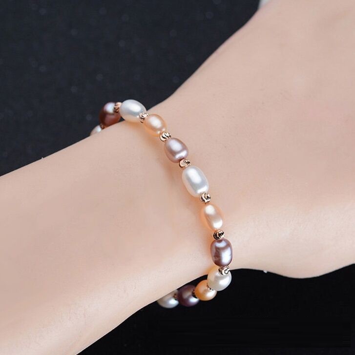 ✨Combo Vòng đeo tay Ngọc Trai nuôi cấy tự nhiên, Mixed màu, hạt bầu dục, 5-7li, freesize, Kèm Bản PHOTOCOPY Giấy KIỂM ĐỊNH, hộp đựng lót Nhung gấm