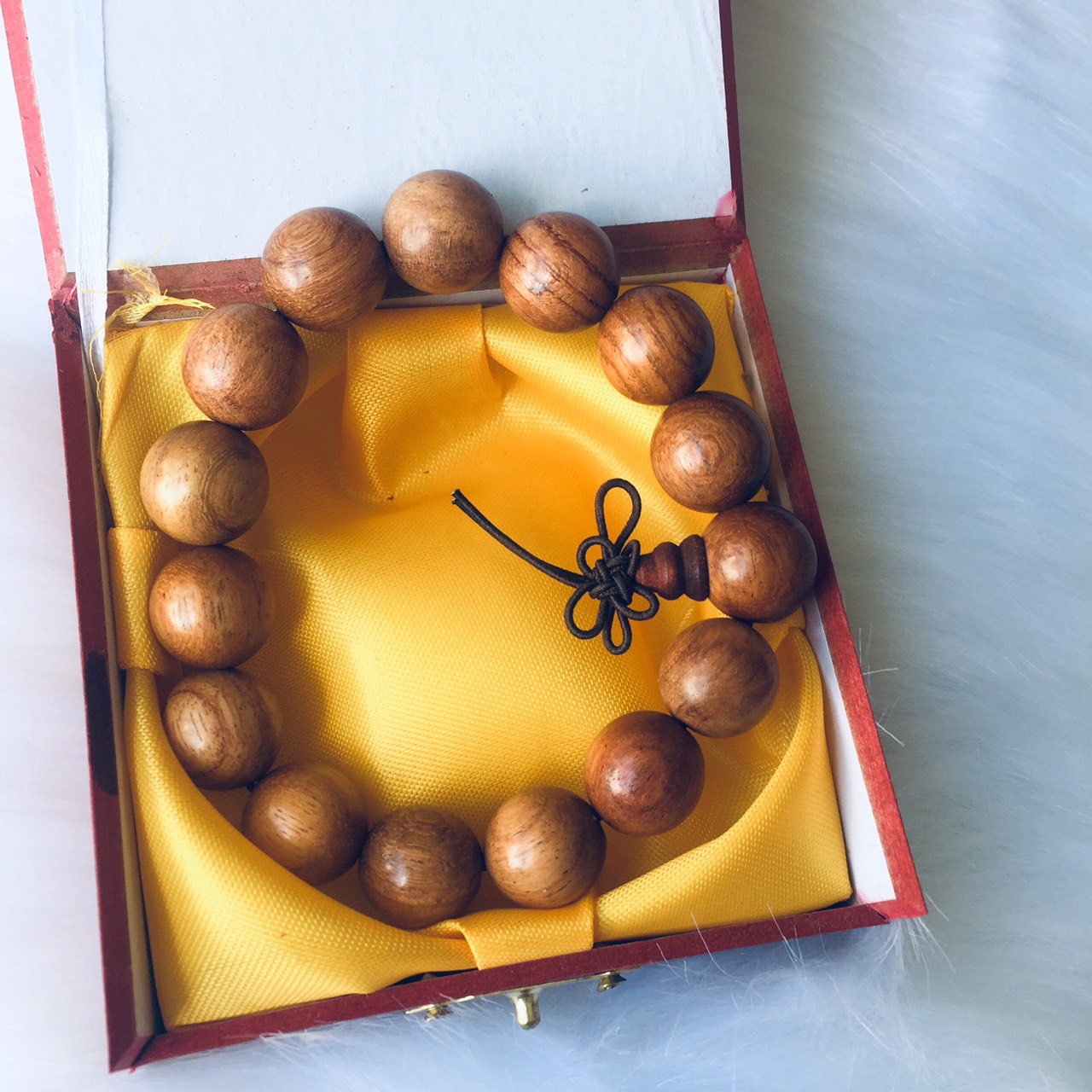 Combo Vòng Đeo tay Phong Thủy Gỗ Sưa Vàng Nâu Myanma, Kèm hộp đựng lót lụa Vàng.