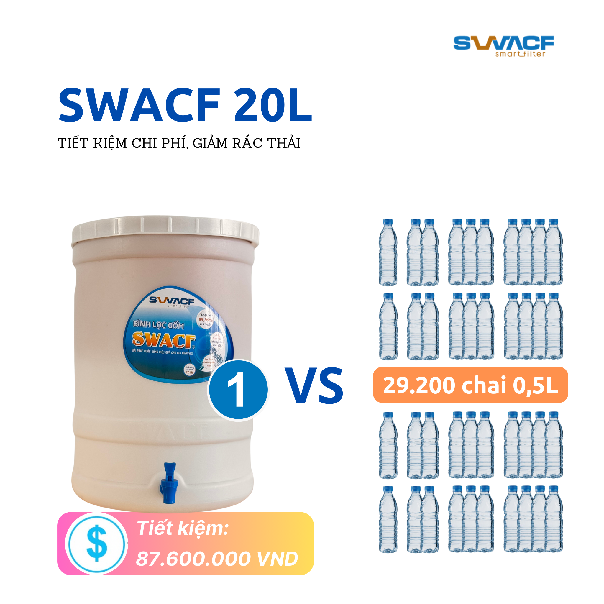 [COMPO 2 BÌNH LỌC NƯỚC] BÌNH LỌC NƯỚC SWACF 20L | Công nghệ GRAVITY Ion Ag+ - Model: 20L CWF - Khử trùng: Tinh thể BẠC - Công nghệ: Mỹ - Xuất xứ: Việt Nam