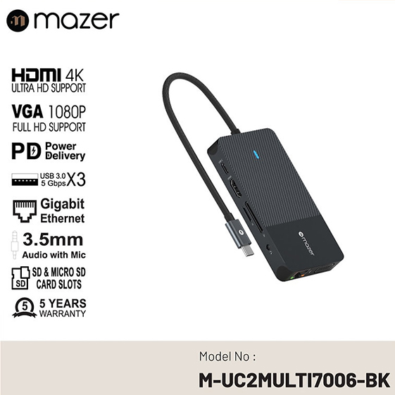 ✨Cổng Chuyển Đổi Mazer Multimedia Pro Hub 10-in-1 USB-C-Hàng chính hãng