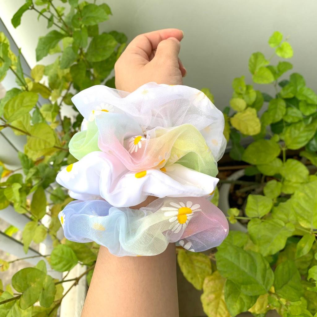 Cột tóc, dây buộc tóc, cột tóc SCRUNCHIES Vải Voan Hoa cúc Họa mi Hàn Quốc xinh - Bách hóa Takamart