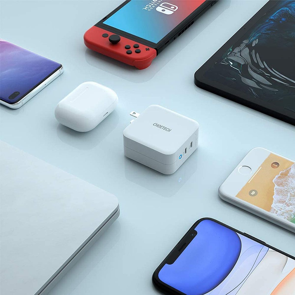 – Với công suất sạc lớn chắc hẳn nhiều người sẽ nghĩ Củ sạc Choetech PD6008 Gan 100w 2 cổng Type C (Hàng chính hãng) sẽ có kích thước lớn hơn các loại củ sạc khác rất nhiều. Nhưng không kích thước của sạc rất vừa vặn khi sử dụng và không hoàn toàn không chiếm diện tích trên ổ điện cũng như chiếm không gian khi mang theo.