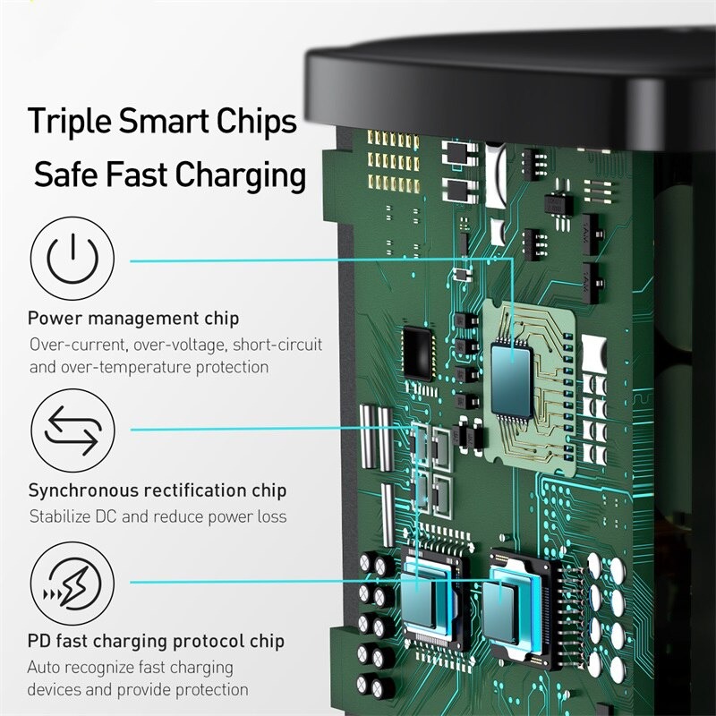 - Đa giao thức Khả Năng Tương Thích Hỗ trợ PD 3.0, QC 3.0, Apple2.4, BC 1.2 và các sạc nhanh các giao thức. Nhanh hơn và An Toàn Hơn MỘT Nhiệt Độ Thấp Nhanh Chóng Sạc cho Apple 12 Thông minh Dịch Chuyển Bảo Vệ Pin 20W đèn Flash sạc pin từ 0 đến 80% Tia nước sạc pin từ 80%-99% Ba Con Chip Thông Minh An Toàn Sạc Nhanh Quản lý điện năng chip Đồng Bộ Chỉnh Lưu chip PD sạc nhanh giao thức chip Tải trọng Phát Hiện, An Toàn và Đảm Bảo An Toàn Tự động tải phát hiện có thể tách ra yêu cầu hiện tại theo thiết bị. Dải Điện Áp rộng Toàn Cầu Sử Dụng AC 100-240V dải rộng điện áp, phù hợp với toàn cầu Thông số kỹ thuật của điện áp đầu vào.