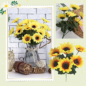 Cụm hoa hướng dương giả - 1 cụm 9 bông - Cây giả, hoa lụa decor trang trí nhà cửa