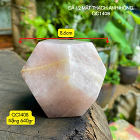 "Bỏ túi" năng lượng yêu thương và an lành với viên đá thạch anh hồng 12 mặt QC1409. Đường kính 8cm, nặng 520gr, chế tác tinh xảo. Biểu tượng của tình duyên, chữa lành và sự