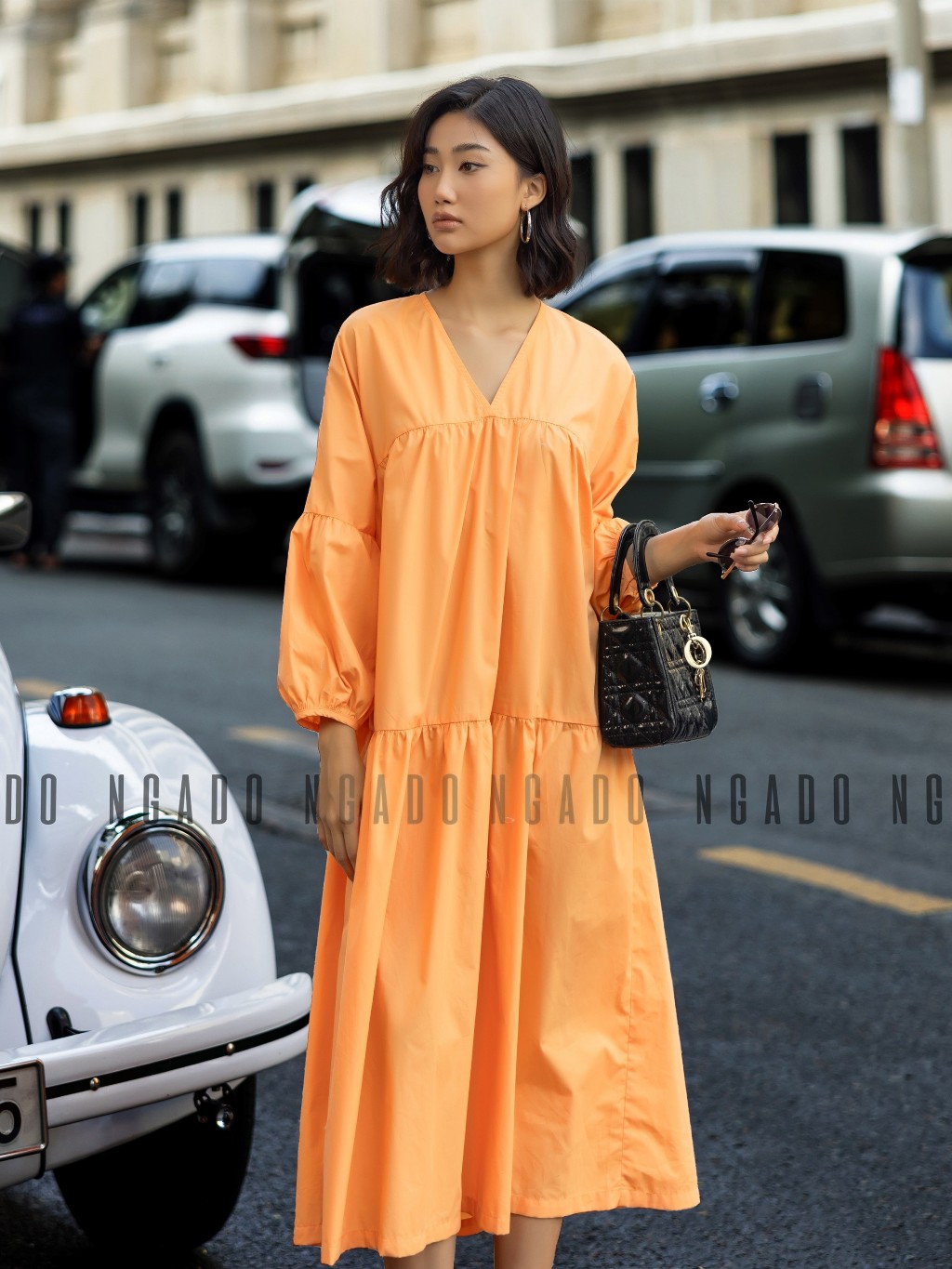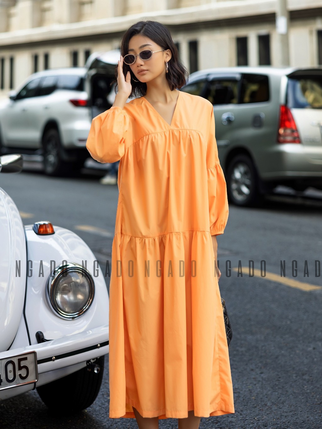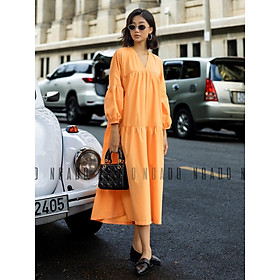 ✨Đầm babydoll cam dài tay NGADO , đầm nữ , Đầm suông , Đầm phom rộng