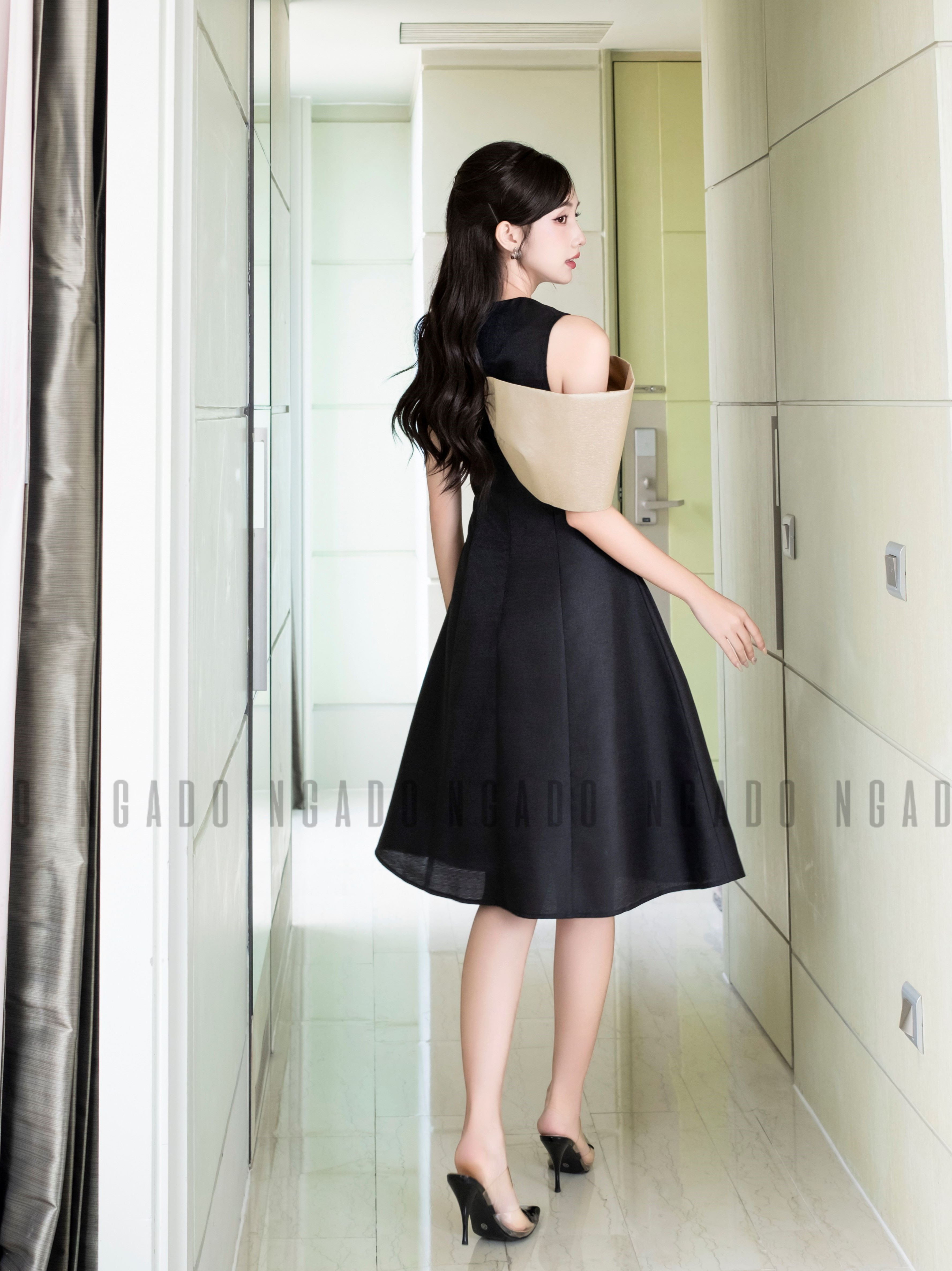 ✨Đầm đen tay nơ NGADO , Đầm xòe , Đầm dự tiệc