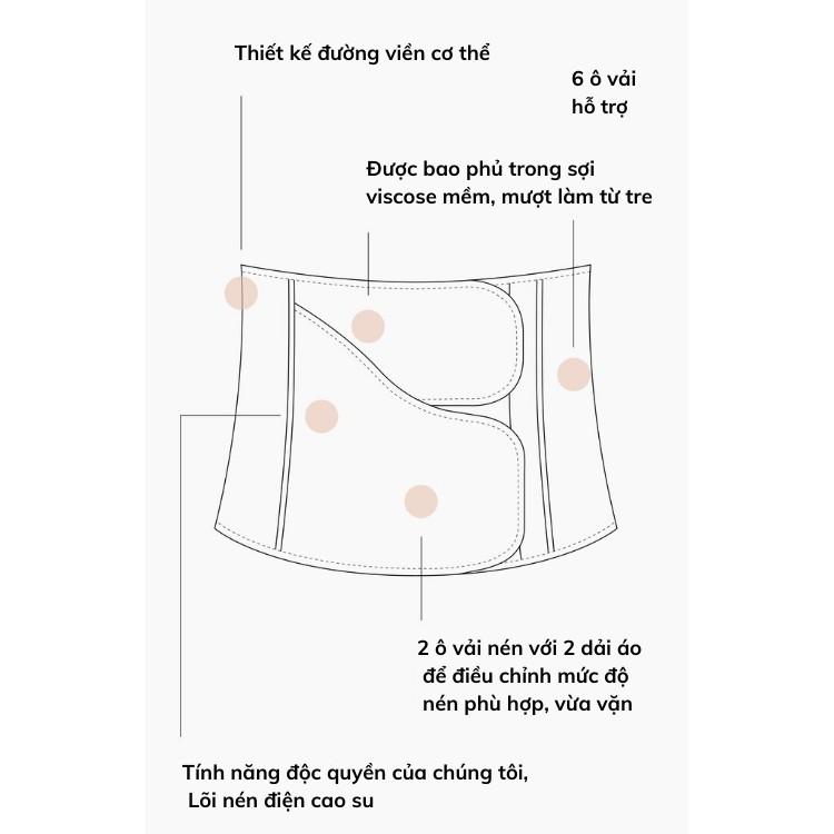 - Đai nịt bụng sử dụng công nghệ nén lõi điện Power Compress Core của chúng tôi để áp dụng tính năng nén nhằm mục tiêu, có thể giúp các bà mẹ sau sinh: ✓ Làm thon gọn, nâng đỡ bụng, eo và hông của bạn ✓ Thúc đẩy khả năng vận động, giúp bạn quay lại các hoạt động hàng ngày nhanh hơn ✓ Giảm đau lưng ✓ Cung cấp hỗ trợ trong khi tập thể dục ✓ Cung cấp sự thoải mái sau khi cắt C ✓ Tạp chí Phụ khoa & Sản khoa Quốc tế đã phát hiện ra rằng Đai nịt bụng có thể là một lựa chọn hiệu quả, đơn giản, không dùng thuốc để giảm đau và không gây khó chịu sau khi sinh mổ. ✓ Được đề xuất cho những người có vòng eo ngắn hơn. ƯU ĐIỂM SẢN PHẨM ✓ Được cấp bằng sáng chế ✓Tính năng Power Compress Core độc quyền, không chứa mủ cao su của chúng tôi ✓ Khả năng điều chỉnh lên đến 9'' để bạn có thể tiếp tục siết chặt đai đeo khi bạn giảm kích thước ✓ Thiết kế cong ✓ 6 ô vải hỗ trợ ✓2 ô vải nén với 2 dải áo để điều chỉnh mức độ nén phù hợp, vừa vặn ✓ Được phủ trong lớp viscose mềm như lựa, làm từ tre. HƯỚNG DẪN SỬ DỤNG