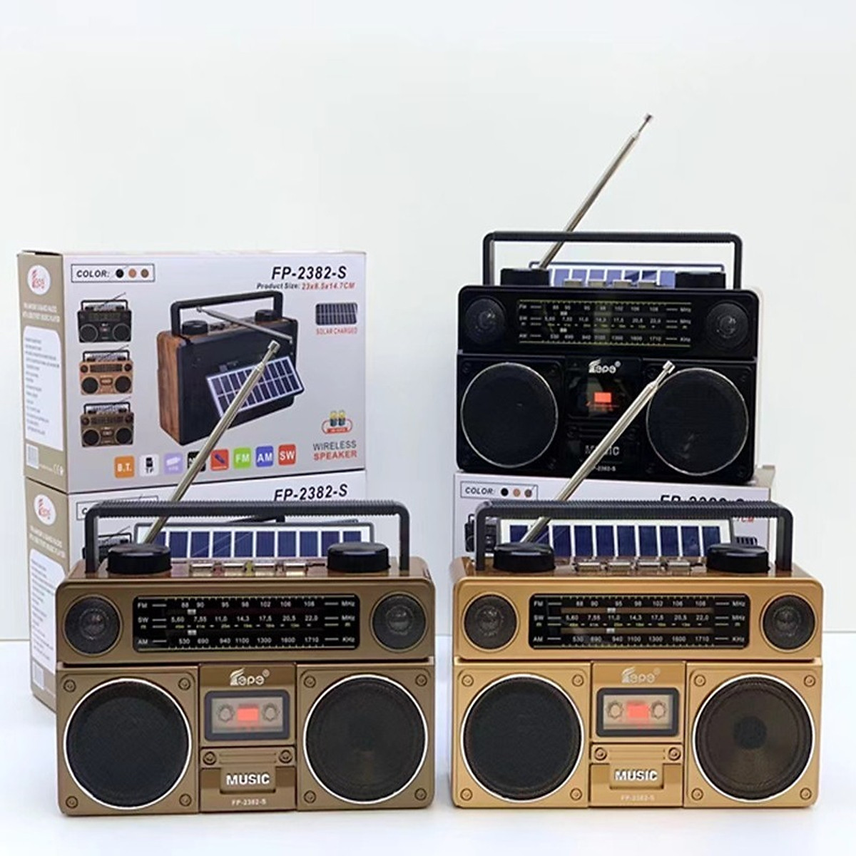 ✨Đài Radio Nghe Nhạc FP-2382-S -Sạc Năng Lượng Mặt Trời, Đài FM, AM, SW-Thiết Kế Cổ Điển Sang Trọng, Ăn-Ten Bắt Sóng Mạnh, Hỗ Trợ Cắm USB-Thẻ Nhớ-Hàng Chính Hãng