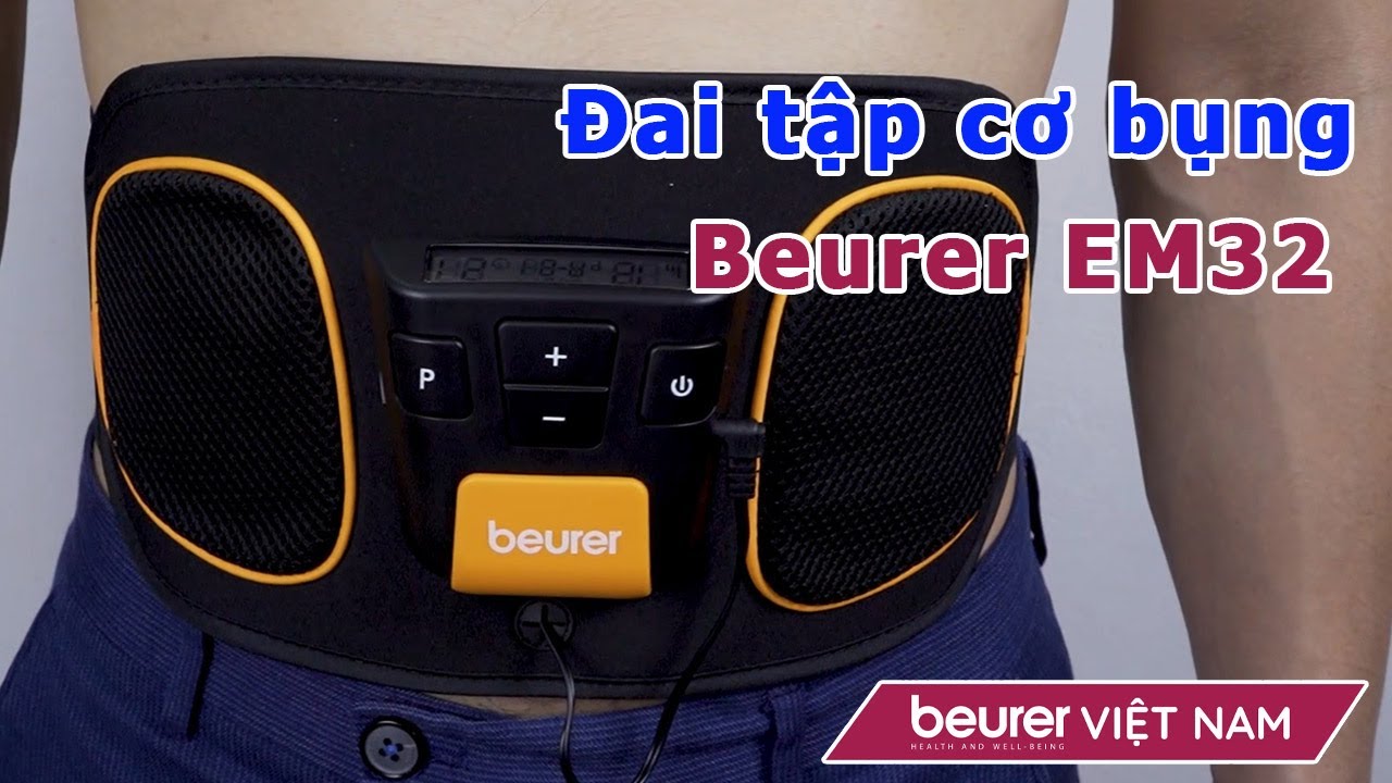 Đai tập cơ bụng Beurer EM32 hoạt động trên cơ sở kích thích cơ bắp bằng xung điện (EMS). Máy tạo ra các xung điện nhẹ nhàng truyền qua da tới các cơ. Tương tự cách kích hoạt tự nhiên bằng xung thần kinh, khi dùng đai cơ sẽ co lại và sau đó sẽ giãn ra. Kích thích nhân tạo này nhẹ hơn so với kích thích chủ động của cơ thể, vì vậy việc dùng đai đeo tập cơ bụng không thể thay thế hoàn toàn việc luyện tập thể thao.