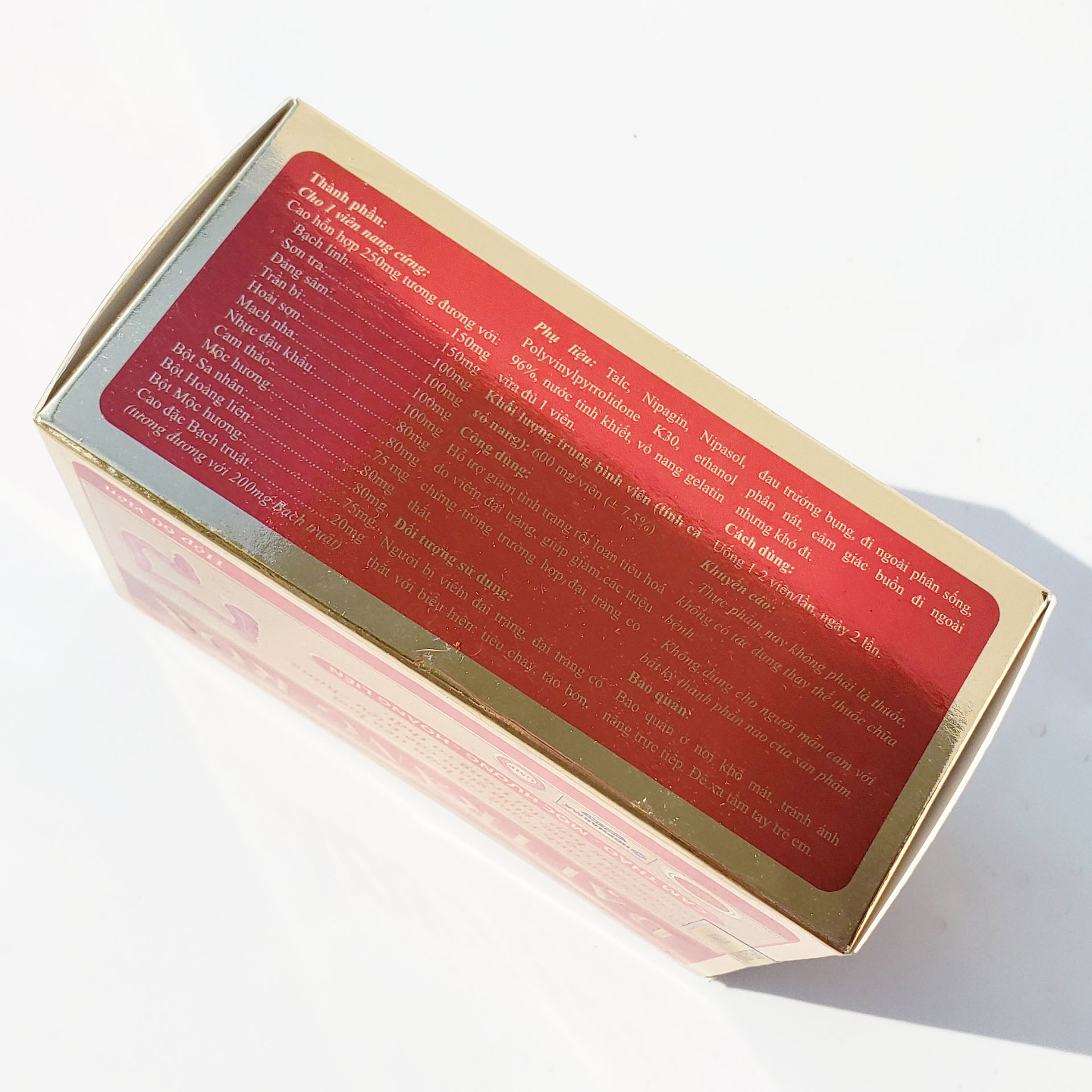 - Người bị viêm đại tràng, đại tràng co thắt với biểu hiện: tiêu chảy, táo bón, đau trướng bụng, đi ngoài phân sống, phân nát, cảm giác buồn đi ngoài nhưng khó chịu. Chống chỉ định – Không sử dụng nếu mẫn cảm với bất cứ thành phần của sản phẩm – Không dùng cho Phụ nữ có thai.