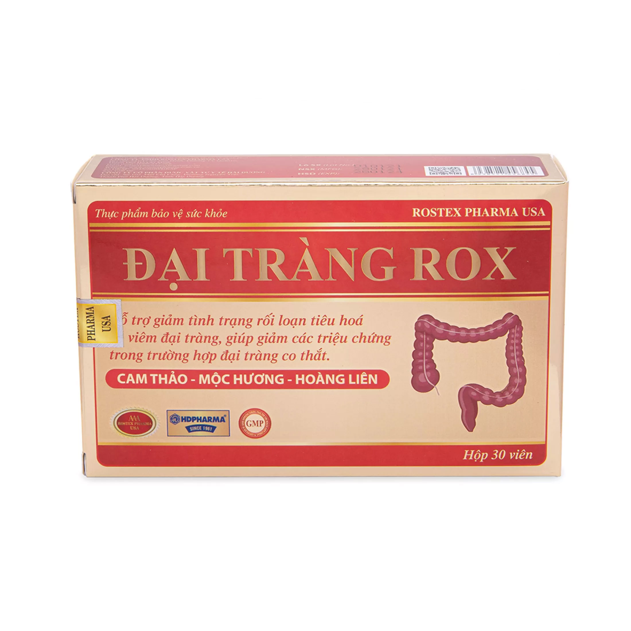 Viên uống Đại Tràng Rox bào chế từ thảo dược thiên nhiên giúp giảm viêm đại tràng, rối loạn tiêu hóa do viêm đại tràng, đại tràng co thắt. Sản xuất tại nhà máy HDPHARMA