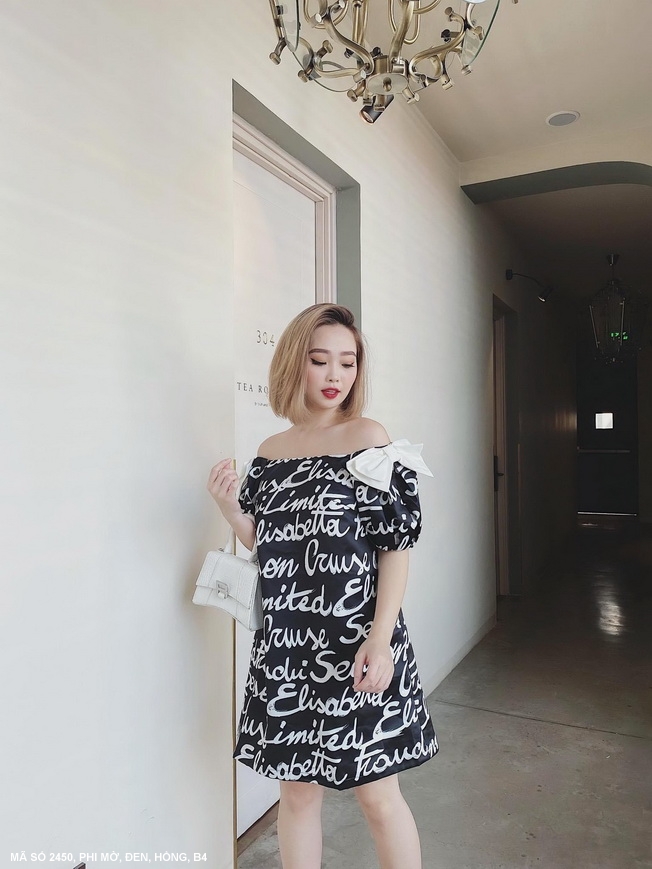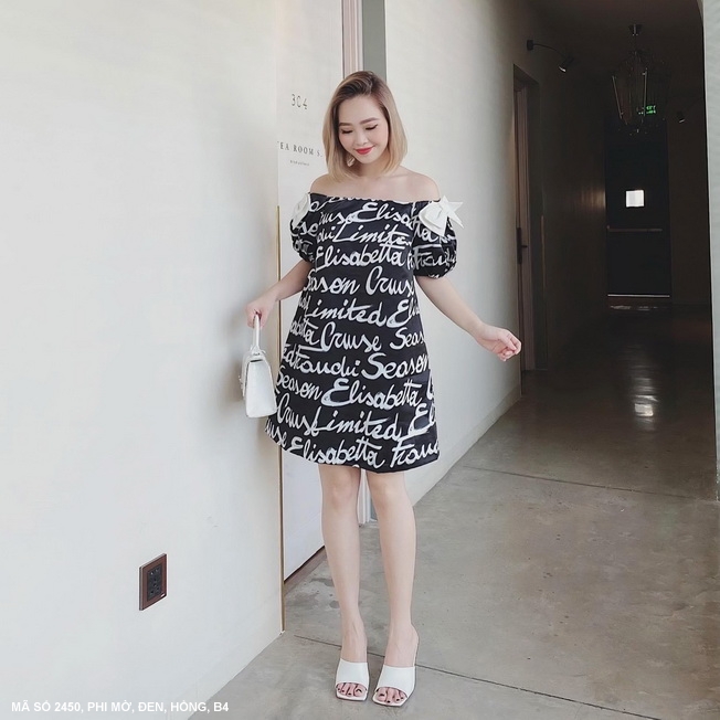 ✨Đầm 2 nơ vai in chữ MS 2450