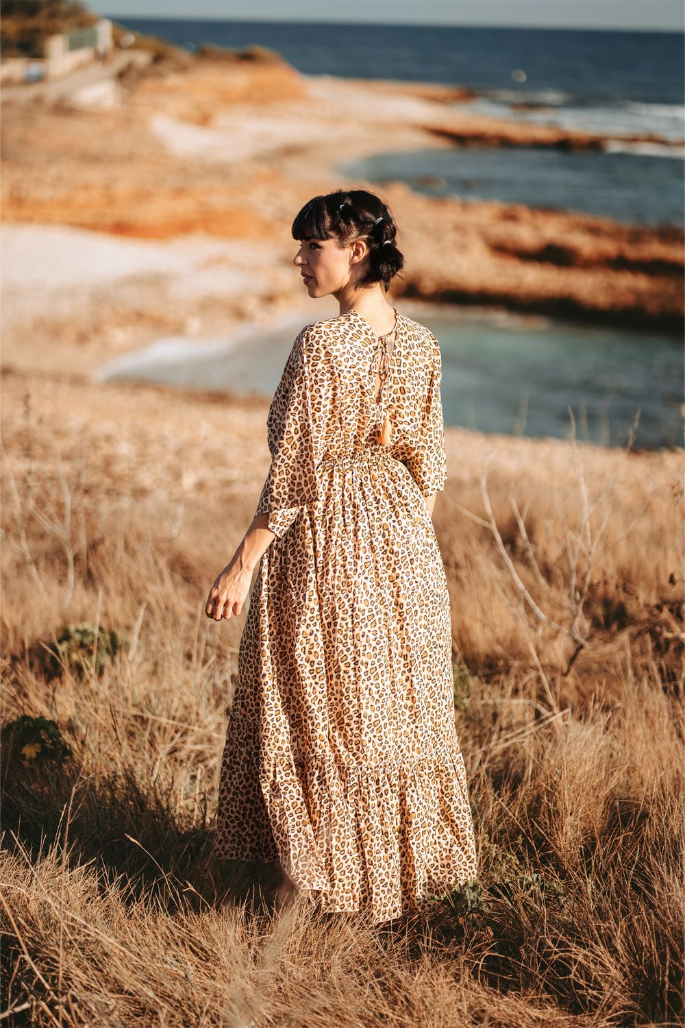 Đầm Boho Dài Tay Isla Bonita, chất lụa cao cấp, mềm mại, thun co giãn ở eo. Phom suông xòe rộng. Dài đầm 90cm (45x90) Phù hợp đi biển, dạo phố, công sở, hoặc dự