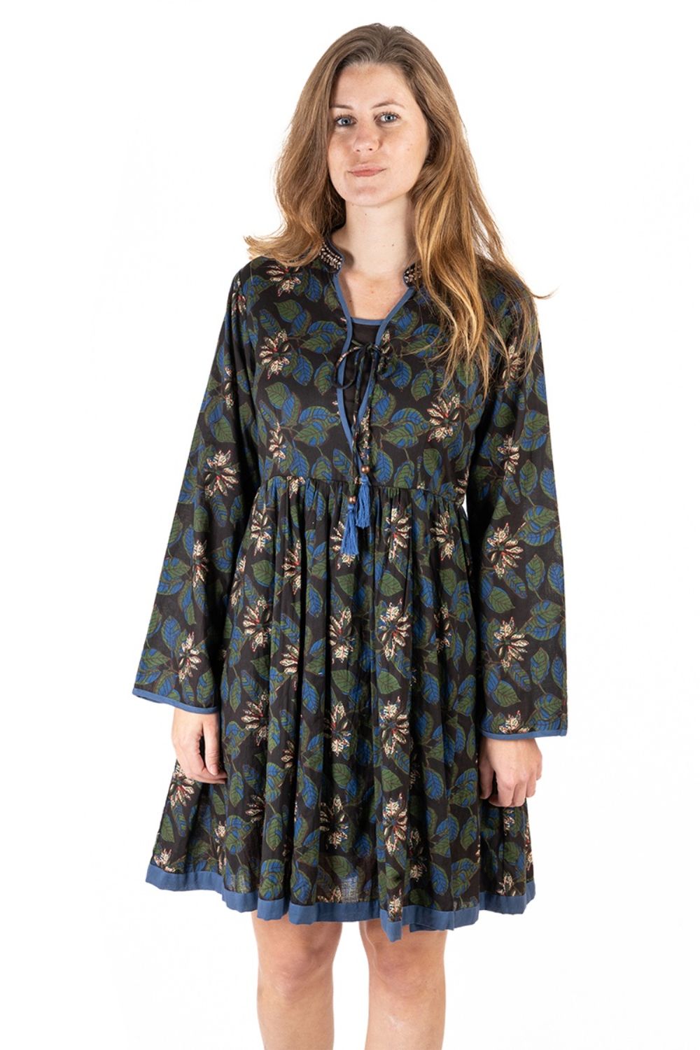 Đầm Boho Dài Tay Isla Bonita, chất lụa cao cấp, mềm mại, thun co giãn ở eo. Phom suông xòe rộng. Dài đầm 90cm (45x90) Phù hợp đi biển, dạo phố, công sở, hoặc dự