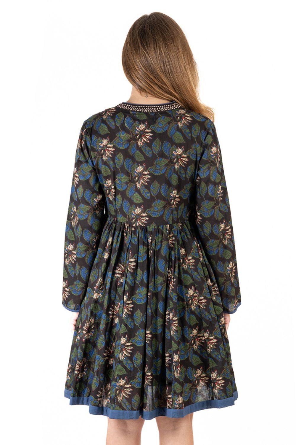 Đầm Sơ Mi Cotton, chất liệu cotton mềm mại, mỏng nhẹ. Phần trước ngực đính hạt tạo hình lá độc đáo. Mặc phối với quần short hoặc legging bên trong. Phom suông. Dài đầm 100cm