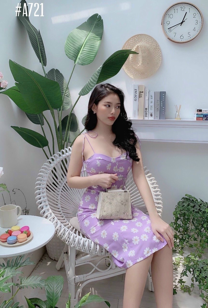 ✨Đầm cúc họa mi 2 dây màu tím sang trọng trẻ trung