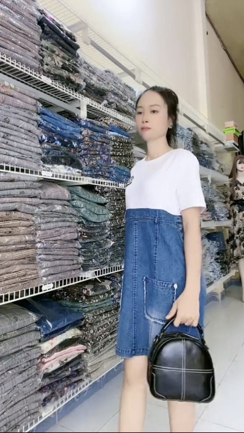 Mua tại TiktokĐầm suông cao cấp denim Mã: DLEG025 Màu: Trắng + Xanh Chất liệu: Denim, spandex Số đo vòng1/vòng2(cm): 93 giãn/92
