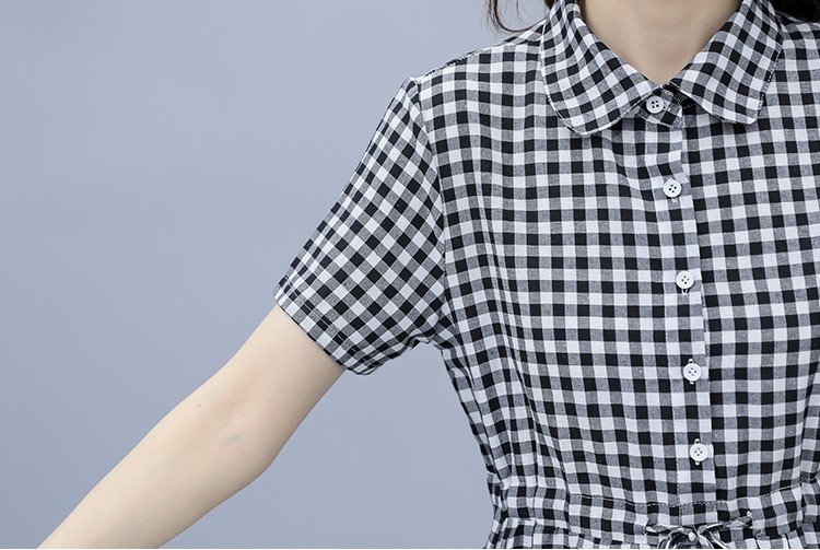 Váy sơ mi kẻ caro phối thêu nơ dễ thương, mang đến vẻ ngoài năng động nhưng vẫn nữ tính.   Thiết kế: Dáng suông thoải mái, cổ sơ mi thanh lịch. Điểm nhấn: Họa